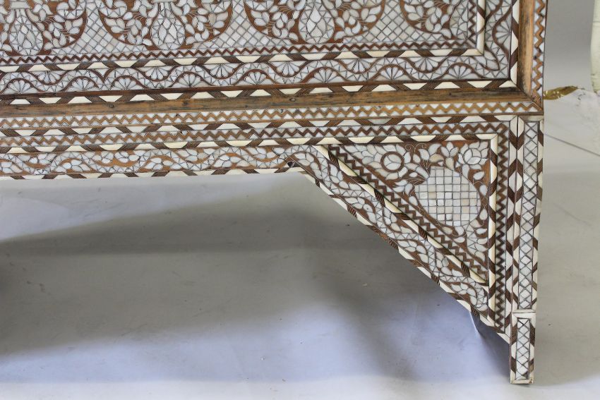 A 19TH CENTURY SYRIAN MOTHER-OF-PEARL INLAID WEDDING CHEST.