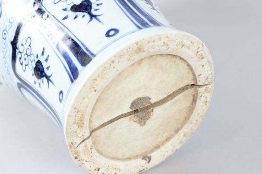 A LARGE CHINESE BLUE, WHITE AND IRON RED MEIPING VASE, with moulded decoration.