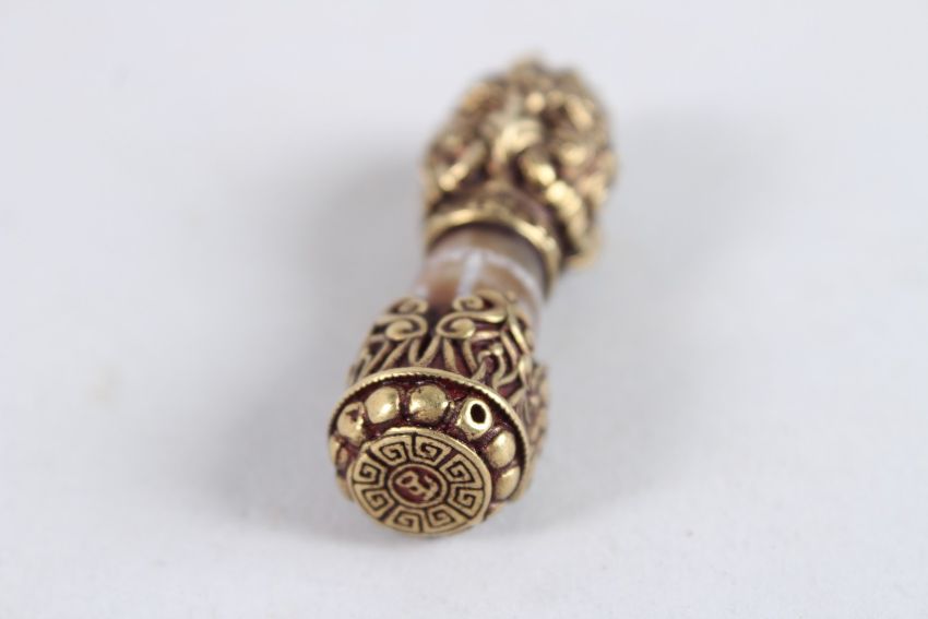 A TIBETAN TIANZHU MOUNTED BRONZE PENDANT.