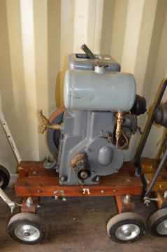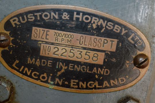 A Ruston & Hornsby Ltd Class PT 700/1000rpm stationary engine with purpose built carriage for exhibition use.