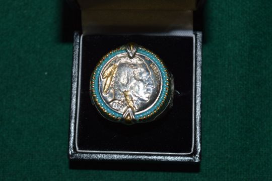 Decorative silver ring.