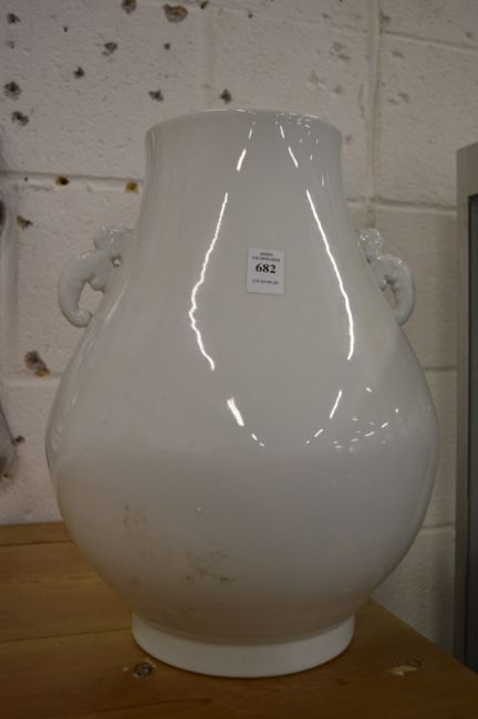 A large Chinese blanc de chine twin handled vase.