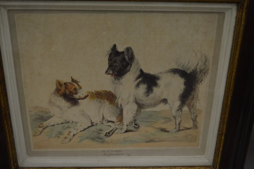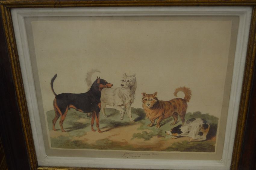 A set of four dog prints, uniformly framed and glazed.