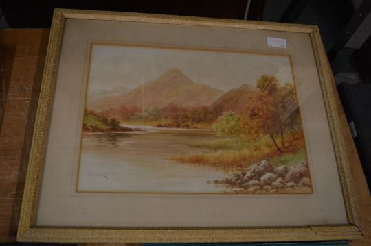 W Richards, Loch Awe, Kilcharn Castle, oil on canvas together with a watercolour and three prints.