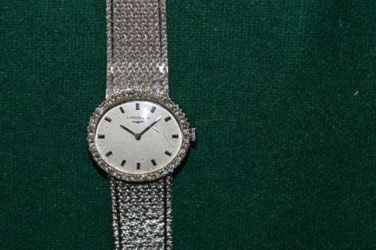 Ladies 18ct white gold and diamond wristwatch.