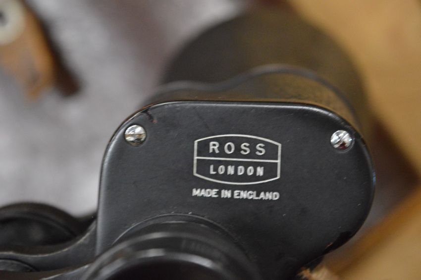 A pair of Ross binoculars with leather case.