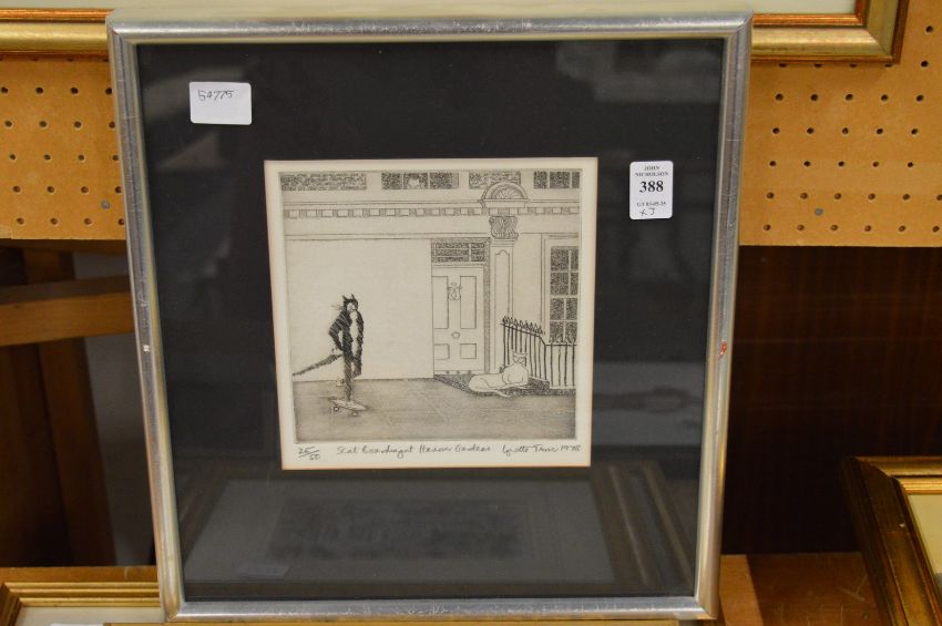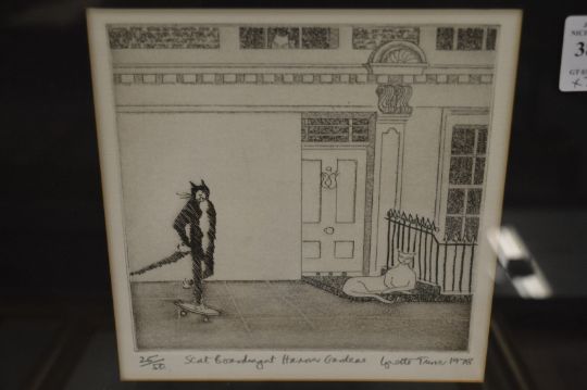 An engraving, a small watercolour and a print.