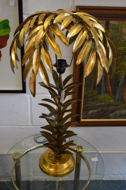 A pair of gilt metal palm tree table lamps.