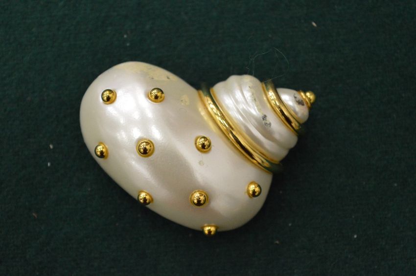 A Kenneth Lane shell shaped brooch.