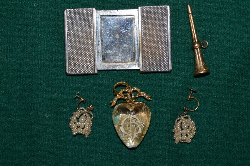 A gold fob seal propelling pencil and other items.