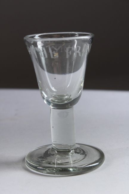 A GOOD SMALL GEORGIAN WINE GLASS, the bowl engraved "THE FRIENDLY HUNT".