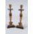 A PAIR OF KATE GREENAWAY CIRCULAR METAL CANDLESTICKS on triangle marble bases.