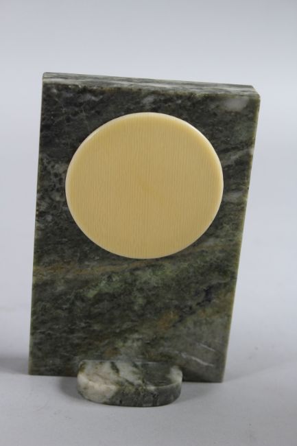 A SUPERB RUSSIAN MOTTLED JADE, ENAMEL AND GILT PHOTOGRAPH FRAME on a stand.