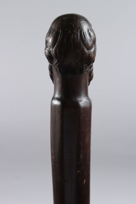 A HARDWOOD WALKING CANE, the handle carved with a bearded MAN.