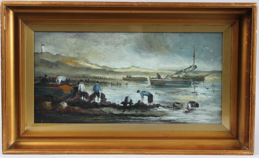 view of a coastline view fishermen unloading,
