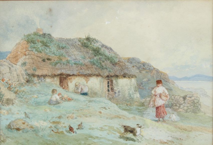 view of crofters on a coastline,