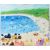 Beach scene with sunbathers and surfers,