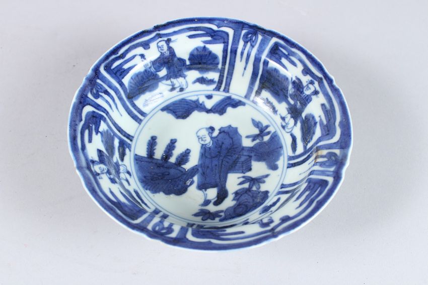 A CHINESE MING STYLE BLUE AND WHITE BOWL.