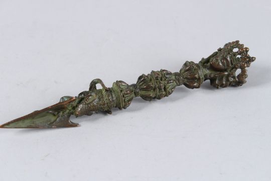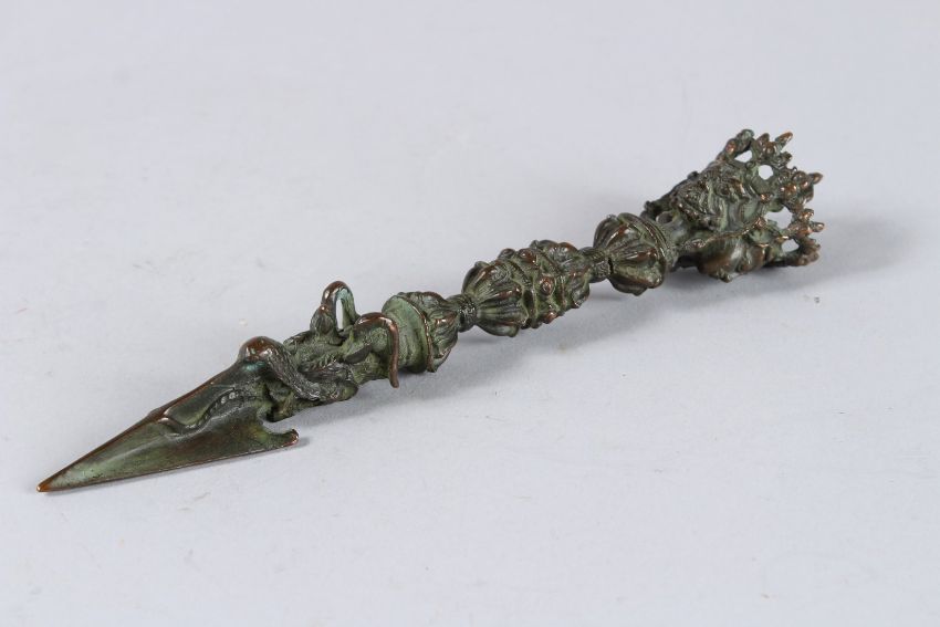 A TIBETAN BRONZE DAGGER / PHURBA.
