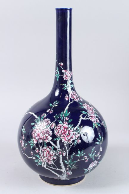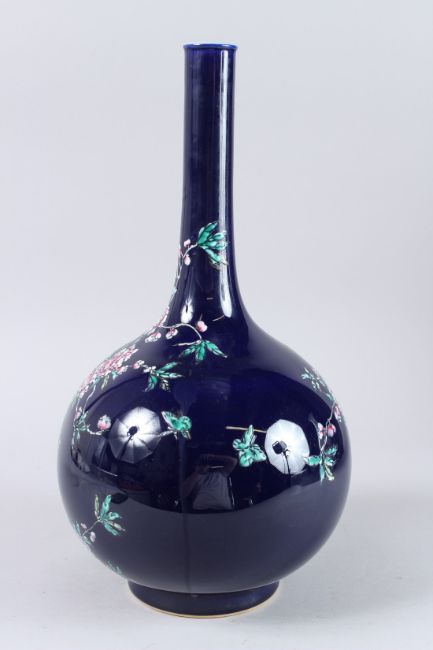 A QING DYNASTY STYLE GLAZED COLOURED PORCELAIN BOTTLE decorated with peonies.
