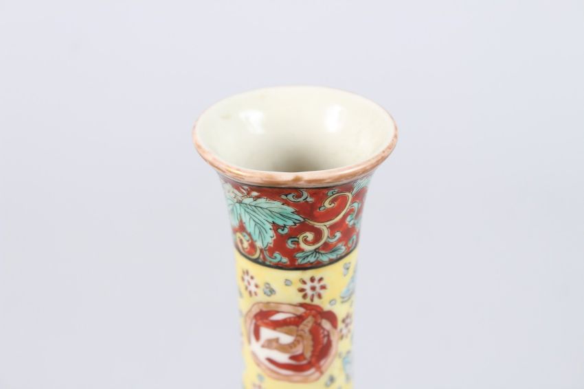 A JAPANESE SATSUMA PORCELAIN BOTTLE VASE, painted with a panel of birds in flight.