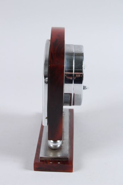 A RARE LARGE EARLY 20TH CENTURY ART DECO RED BAKELITE, possibly cherry amber, TABLE CLOCK.