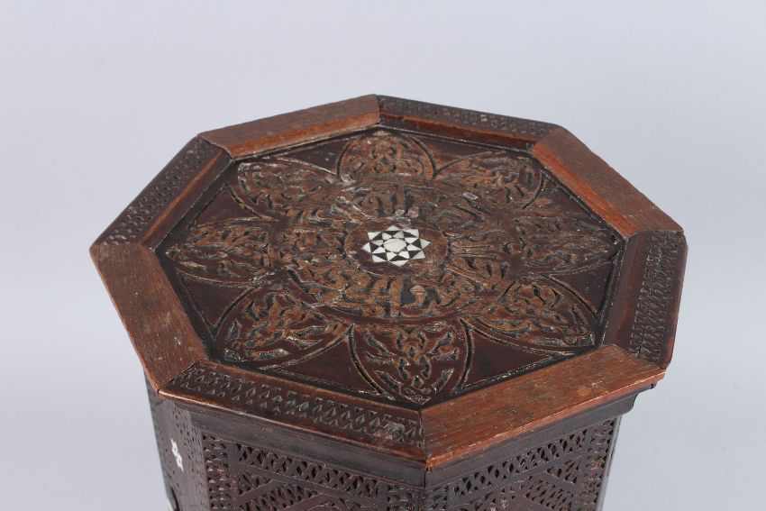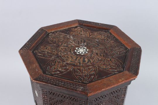 AN ISLAMIC OCTAGONAL TABLE inlaid with mother-of-pearl and bone.