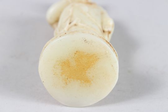 A CARVED WHITE JADE GOD FIGURE.