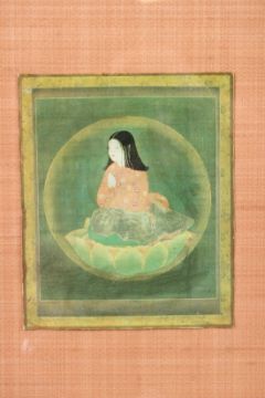 AN INDIAN WATERCOLOUR OF A YOUNG GIRL PRAYING.