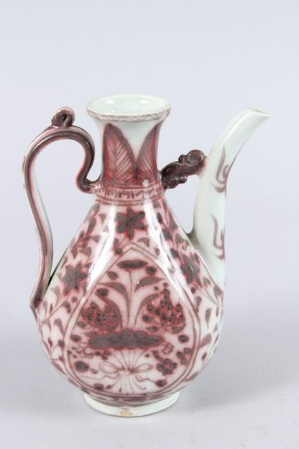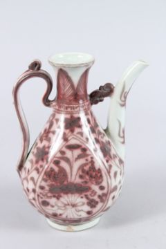 A CHINESE POTTERY EWER, painted with flowers in underglaze iron red.