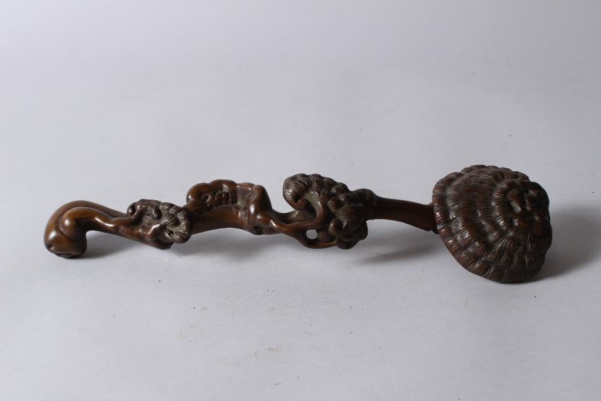 A CHINESE CARVED WOOD RUYUI SCEPTRE, of naturalistic form.