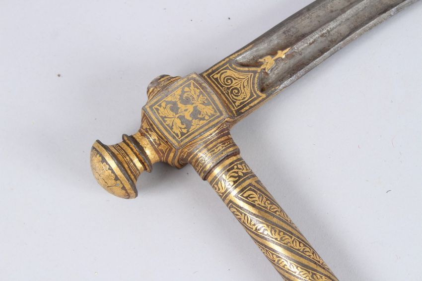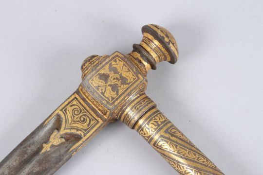 A GOOD OTTOMAN TURKISH GOLD INLAID WAR HAMMER.