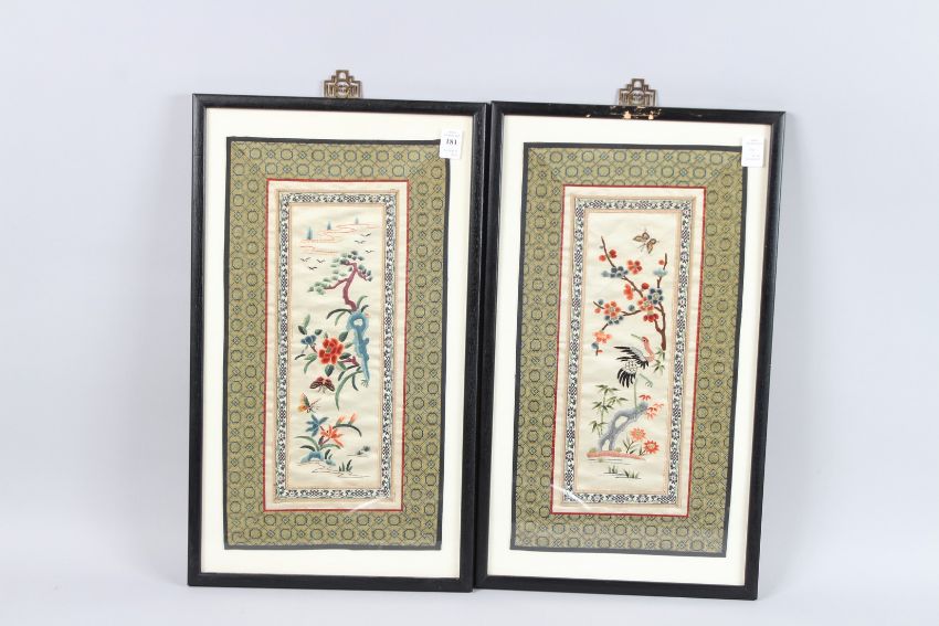 A PAIR OF FRAMED AND GLAZED CHINESE SILKWORK PICTURES.