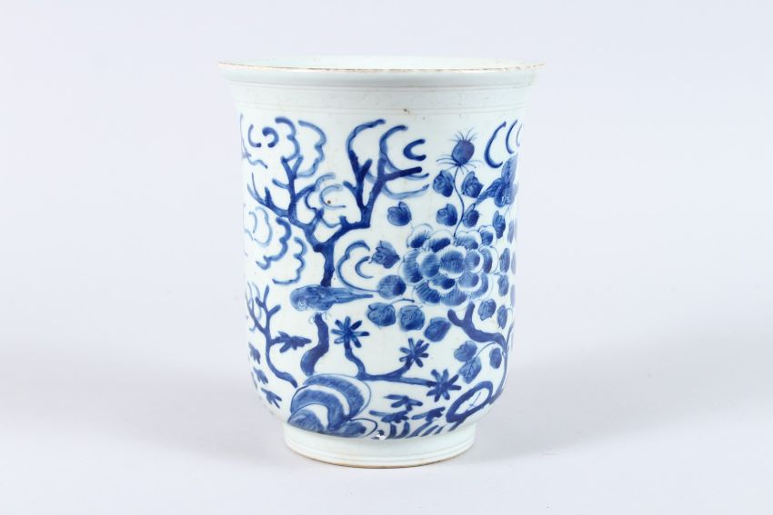 A CHINESE PORCELAIN BLUE AND WHITE VASE, painted with birds in a flowering tree.