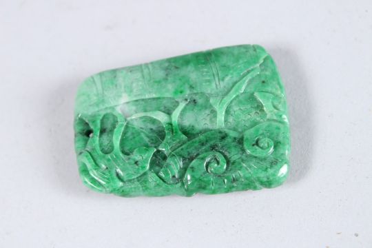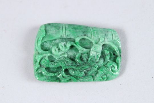 A CHINESE NATURAL COLOUR APPLE GREEN JADEITE PENDANT.