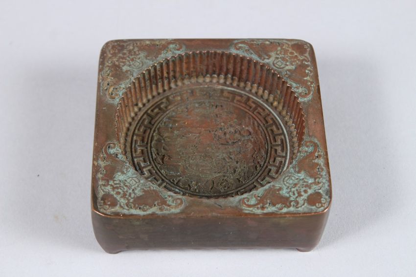 A CHINESE BRONZE RICE CAKE MOULD.