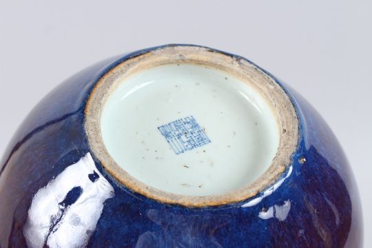 A LARGE CHINESE DEEP BLUE BULBOUS VASE.
