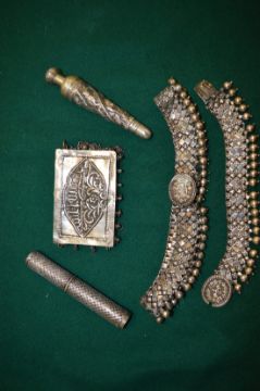 Decorative Eastern metal jewellery, scent bottles etc.