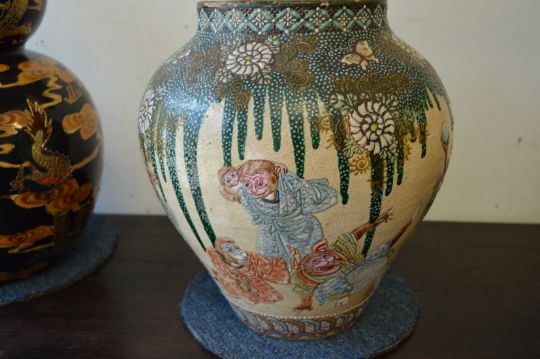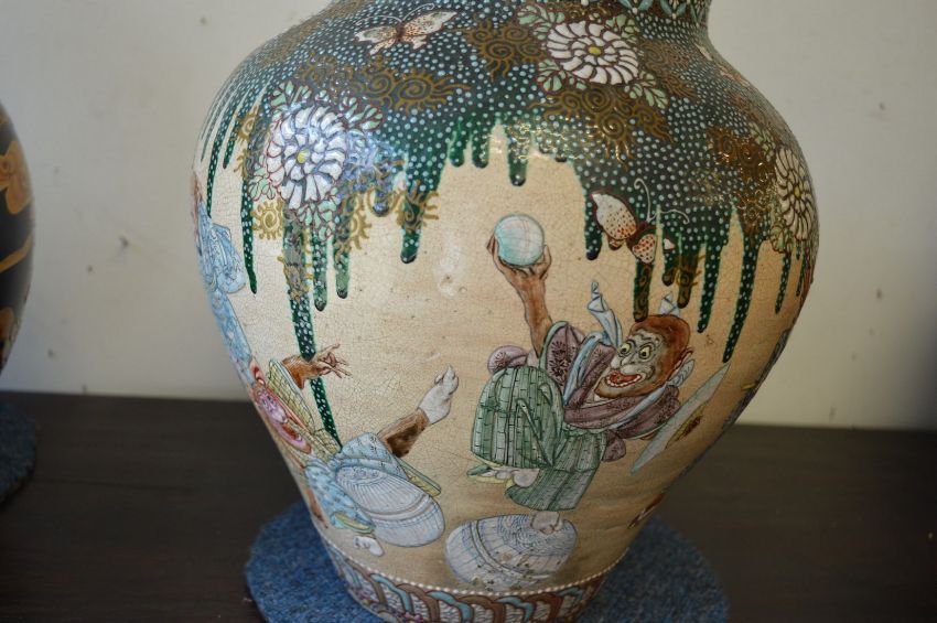 A large satsuma vase unusually decorated with monkeys playing billiards.