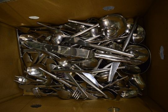 A large quantity of modern stainless steel cutlery.