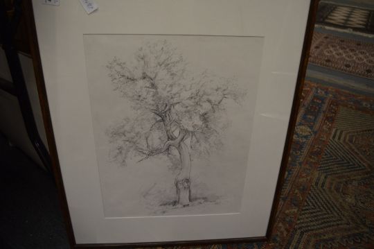 Peter Horsfield, tree study, pencil together with a small print.