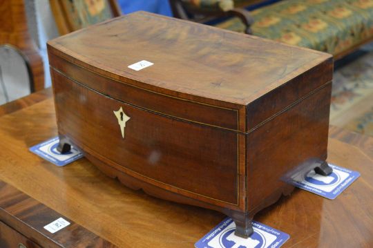 19th century mahogany bow fronted table top storage box with fitted interior.