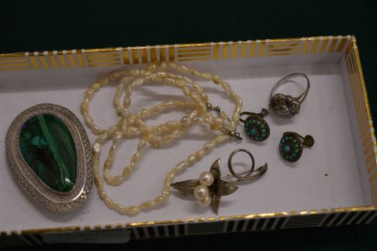 A group of jewellery to include a silver and marcasite ring.