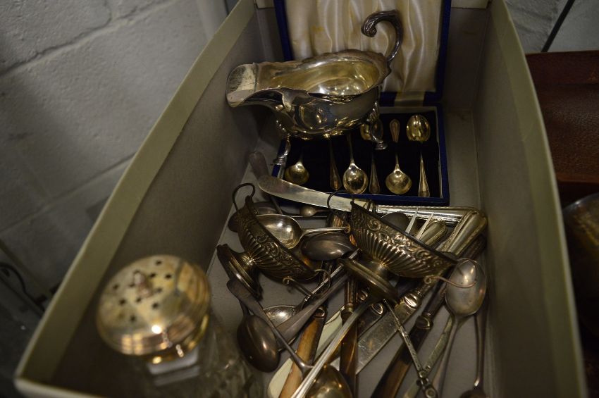 A small collection of silver items to include sauce boat, sugar castor, pair of salts etc.