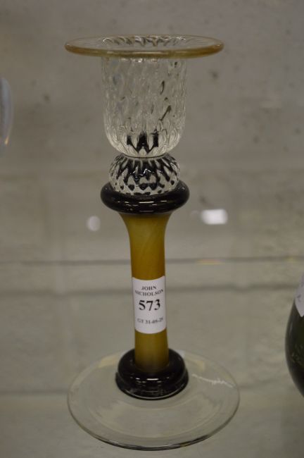 Paul Barcroft, Isle of Wight glass maker, a frosted and clear glass candlestick.