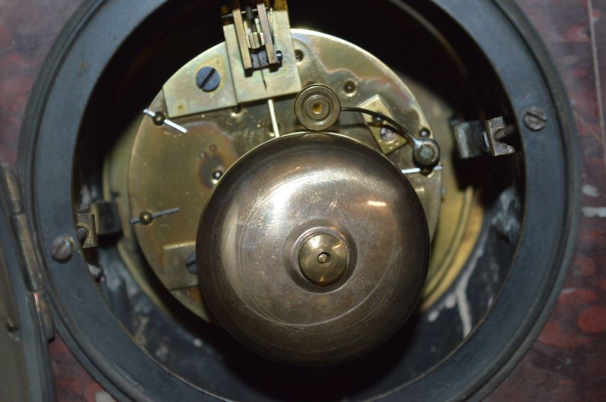 A rouge marble cased Victorian mantel clock, the dial signed J W Benson.