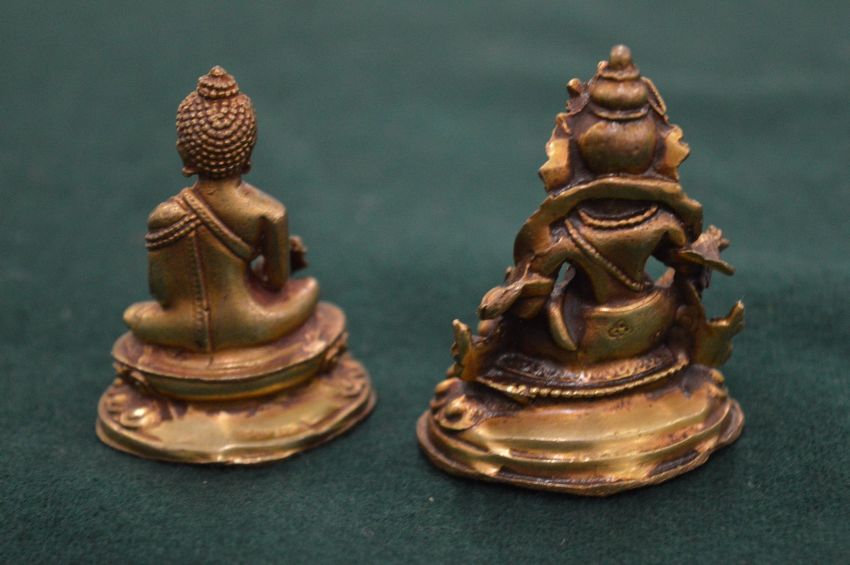 Two miniature Chinese bronze deities.