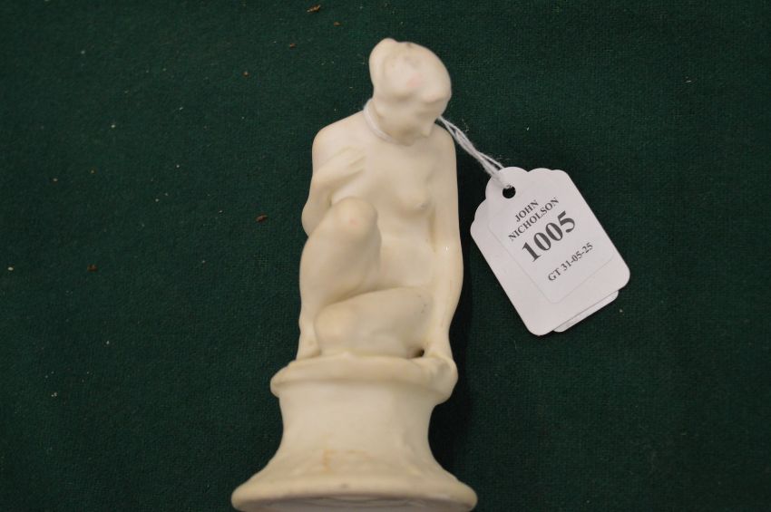 A Royal Doulton bisque porcelain model of a seated female nude.