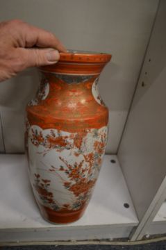 Large Japanese satsuma ginger jar (faults) together with a Japanese Kutani vase.