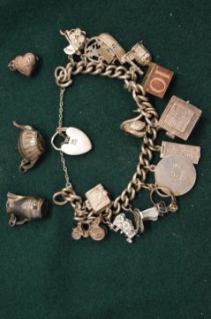A silver charm bracelet.